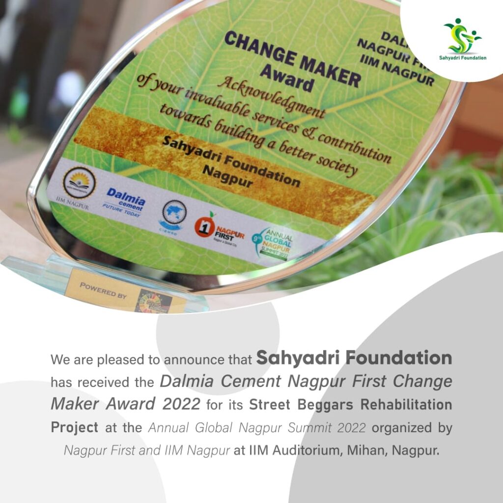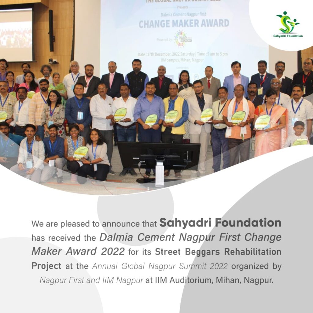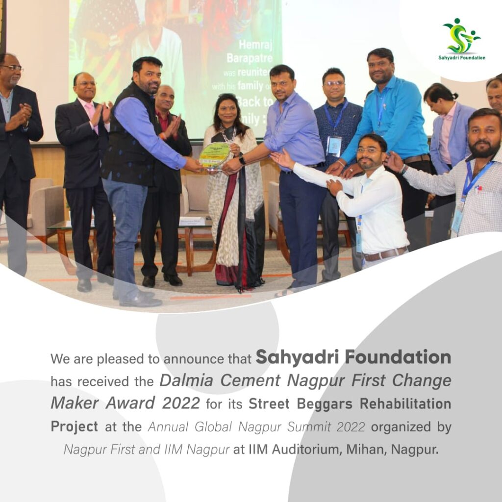 We are honored to receive the Dalmia Cement Change Maker Award 2022 for our Beggars Rehabilitation Project at the Global Nagpur Summit 2022, organized by Nagpur First and the Indian Institute of Management (IIM-N), Nagpur.